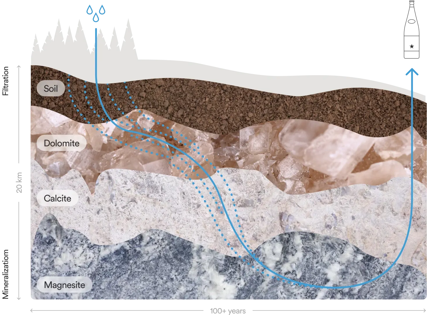 On its way through layers of rock, rainwater is not only purified as if passing through a fine sieve. It is also enriched with minerals such as magnesium, calcium or sodium.